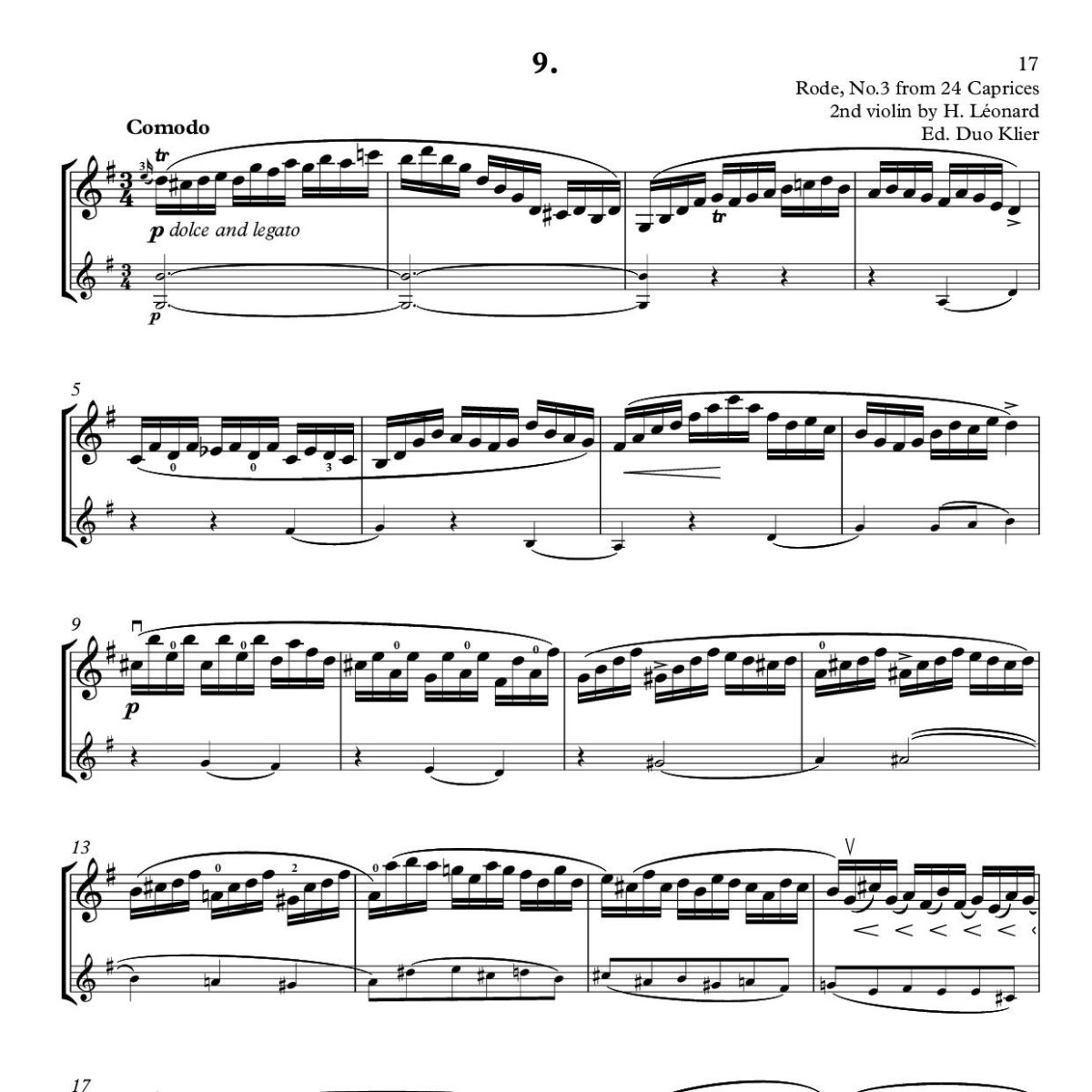 9. Rode, No.3 from 24 Caprices. 2nd violin by H. Léonard
