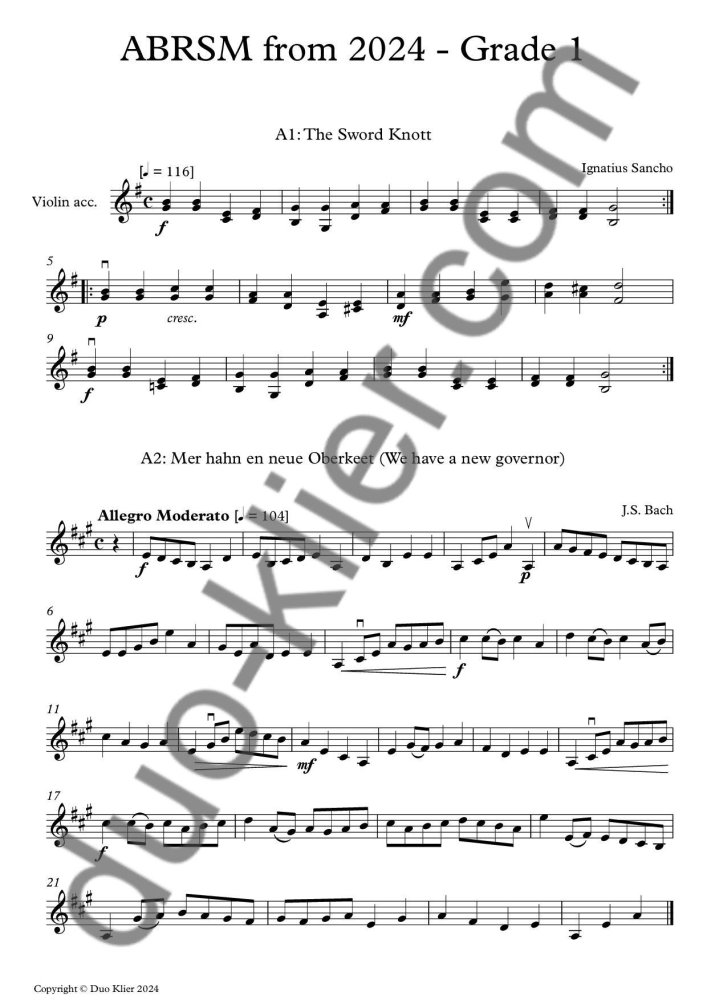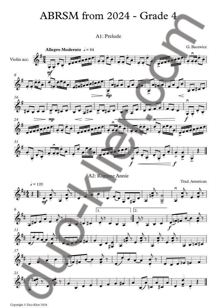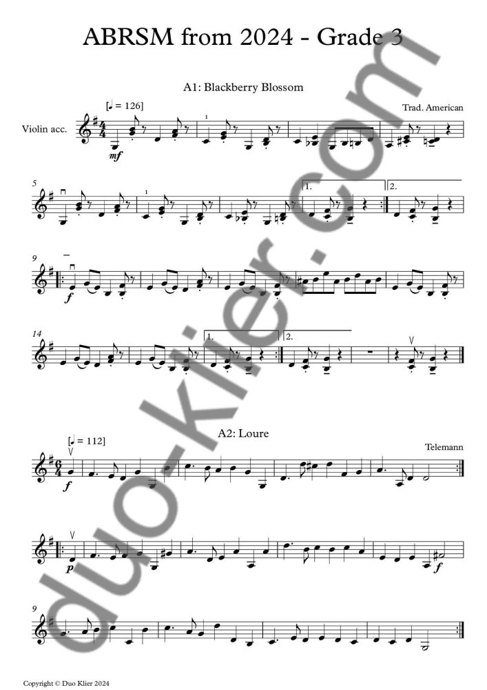 2nd violin accompaniments to all the pieces listed in the ABRSM from 2024 - Violin Exam pieces, Initial to Grade 4