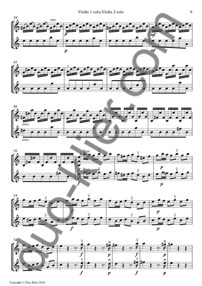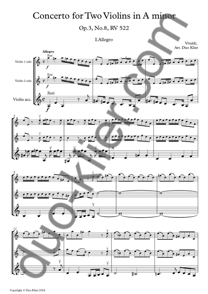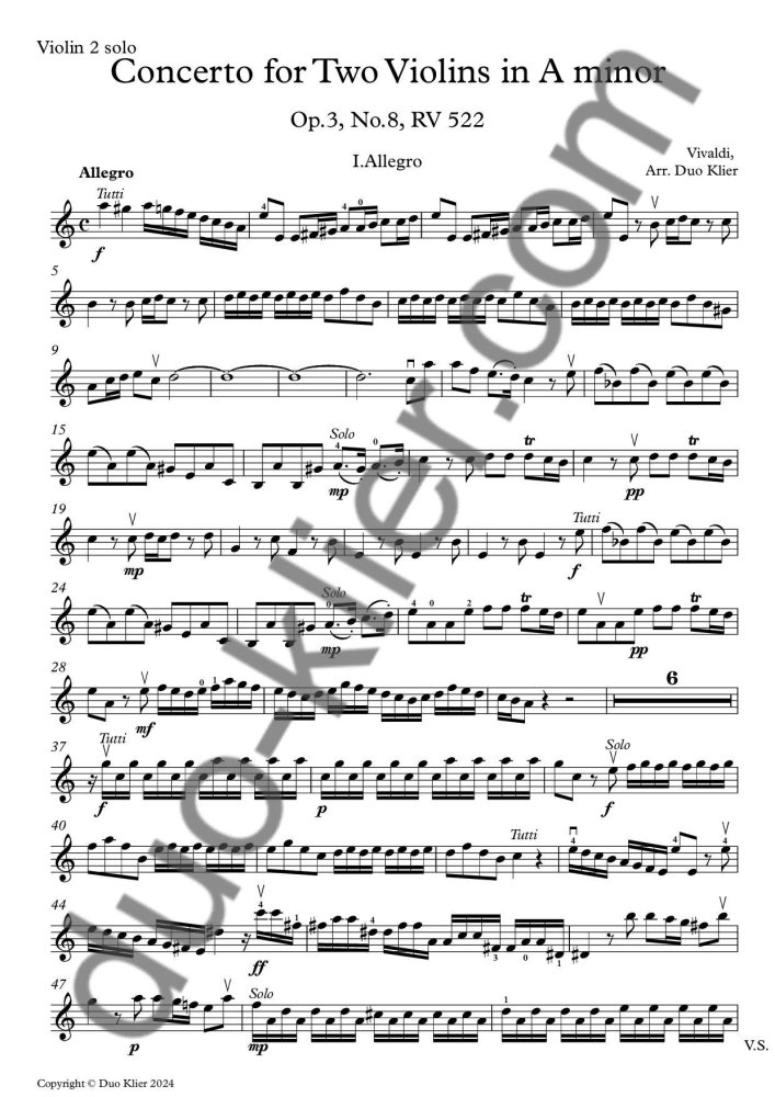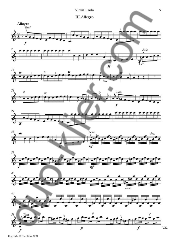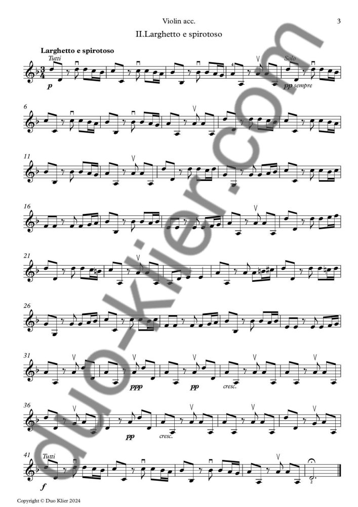Number of pages: 45 (score + parts: Vl. 1 solo, Vl. 2 solo, Vl. accompaniment & useful Vl. solo 1 + 2)