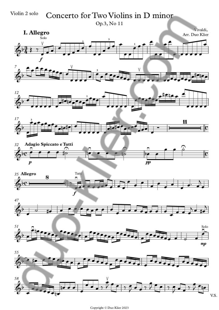Number of pages: 30 (score + parts: Vl. 1 solo, Vl. 2 solo, Vl. accompaniment & useful Vl. solo 1 + 2)