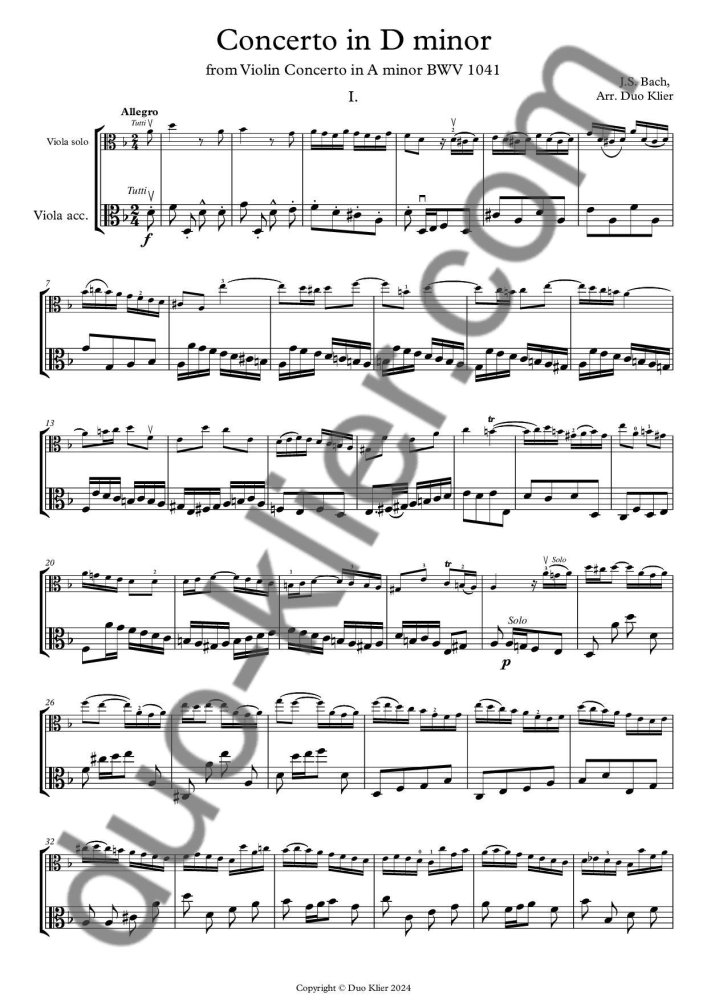 Work title: Viola Concerto in D minor, from Violin Concerto in A minor, BWV 1041 (1717–1723)