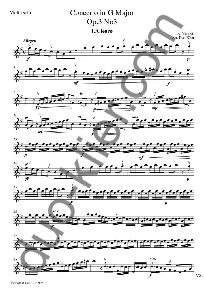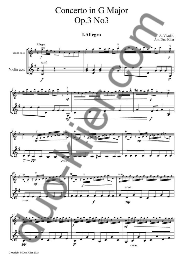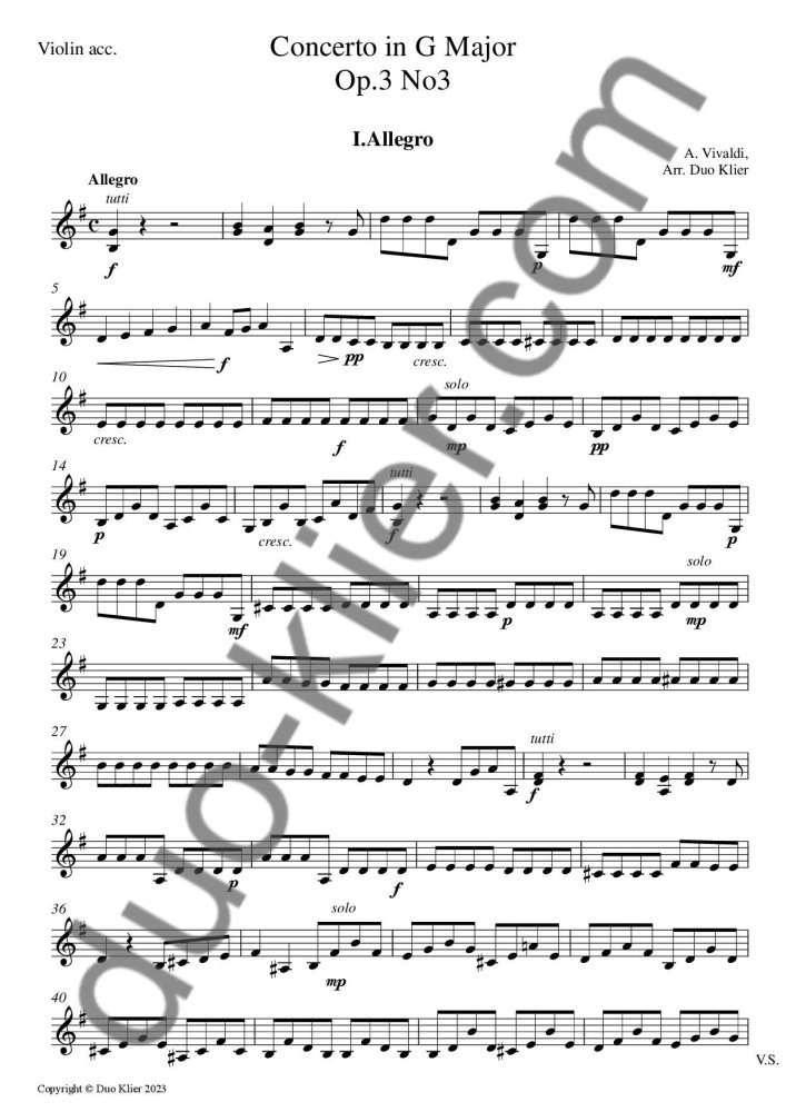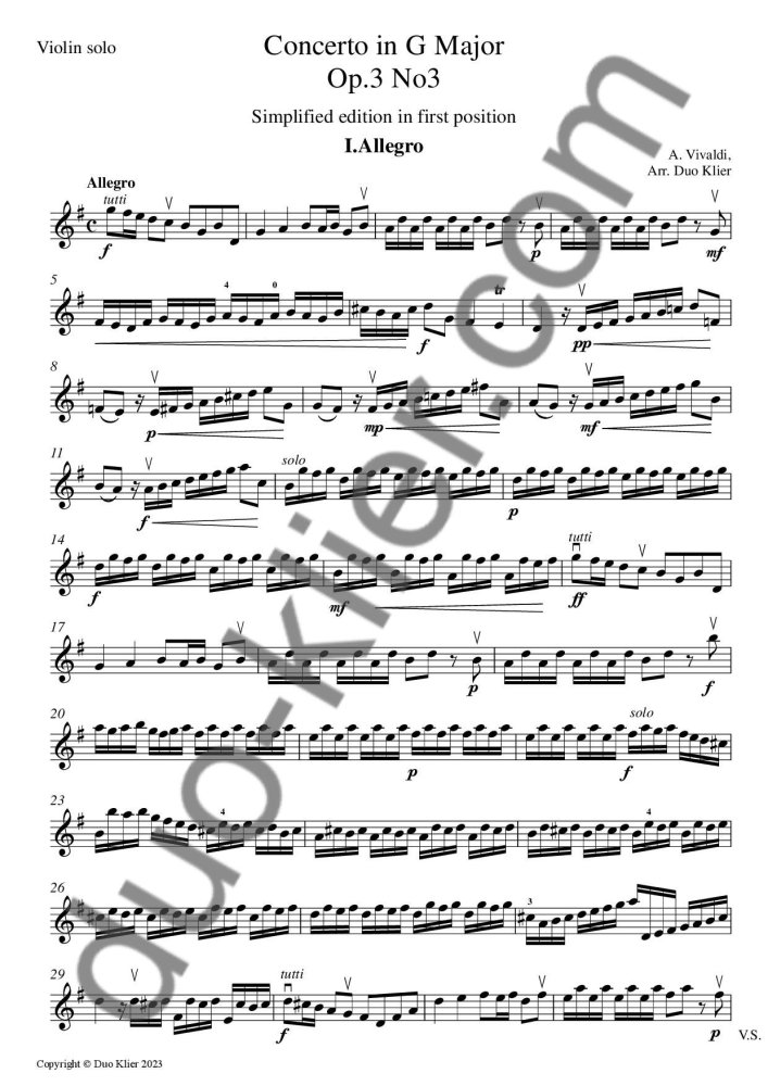 Arrangement: Violin Duet. The file includes Vivaldi's original version and a simplified one in first position, both in violin duet.