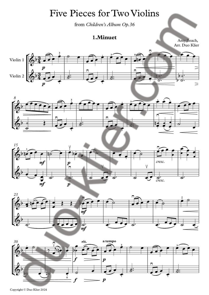 Work title: Five Pieces for Two Violins. From her Children's Album Op.36 for piano (1897)
