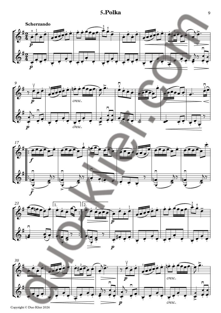 Arrangement: Violin Duet. The file includes a version for advanced players and a simpler one for students, without double stops or advanced fingering.