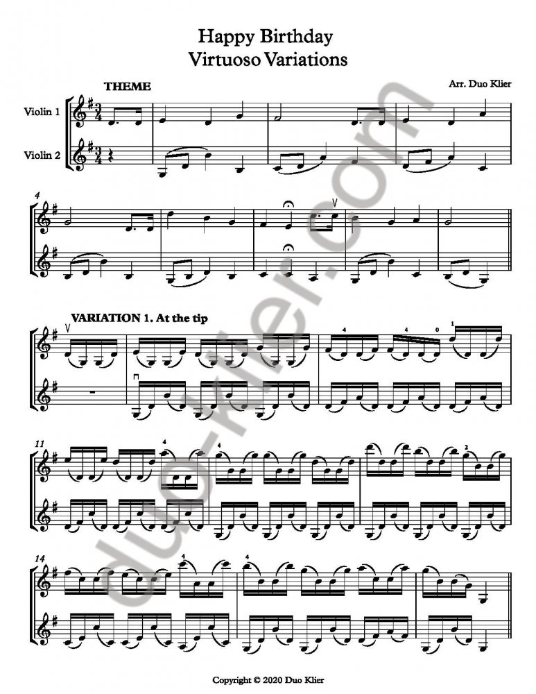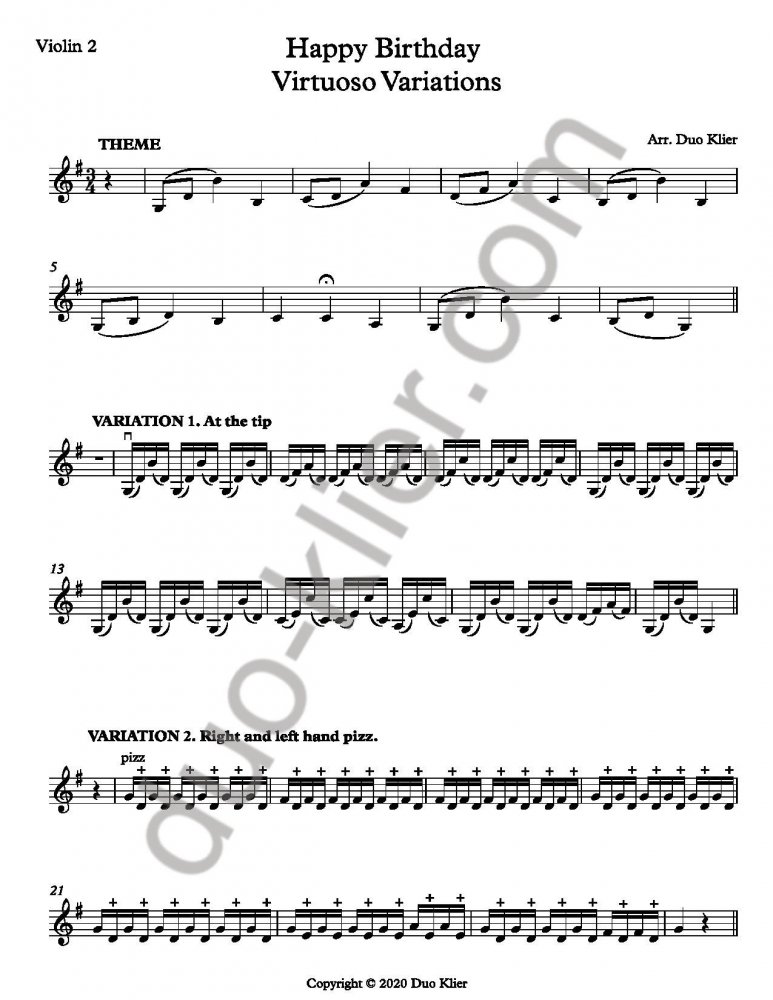 Movements/sections: 7: Theme, Var.1: At the tip, Var.2: Right and left hand pizz., Var.3: Trills and mordents, Var.4: Harmonics, Var.5: Minore, Var.6: Finale.