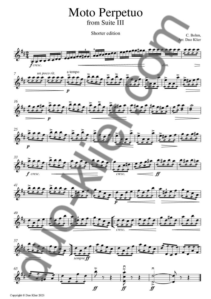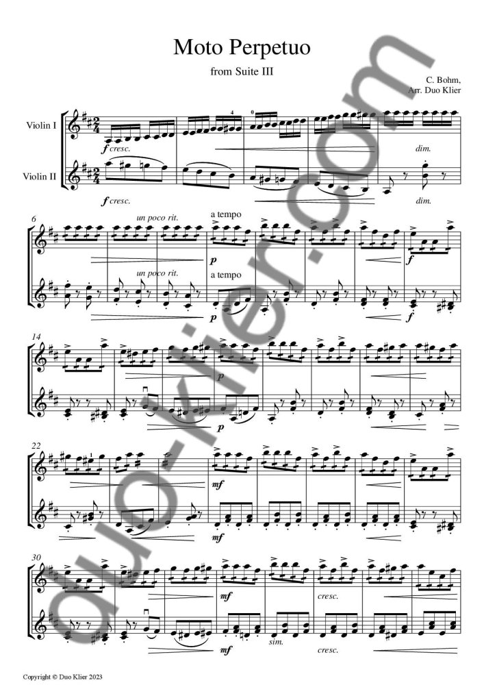 Arrangement: Violin Duet. The file also includes a shorter edition for younger students.